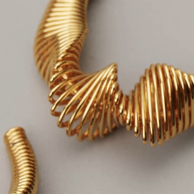 The Nyoka Earrings, like the Nyoka bracelet, explores movement through continuous coiling lines, an expression of flow, tension, and modern architectural rhythm. Its spiral form wraps the wrist with quiet confidence, evoking ascent, continuity, and precision in motion.String-like yet structured, Nyoka is fluid design made deliberate.