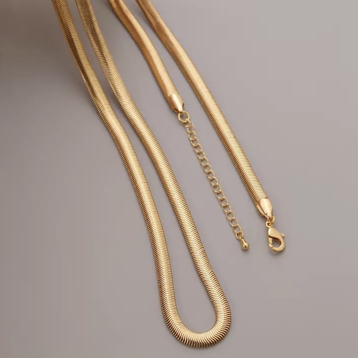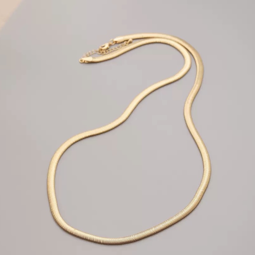 A study in simplicity. The Safiya Necklace features a clean, delicate chain designed to complement every neckline.